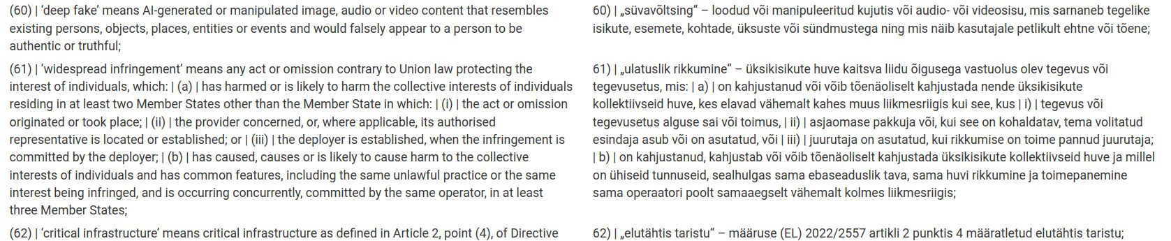 The following table links to the bilingual view of the AI Act in all language pairs. Enjoy, and as usual, we are always open to feedback!
