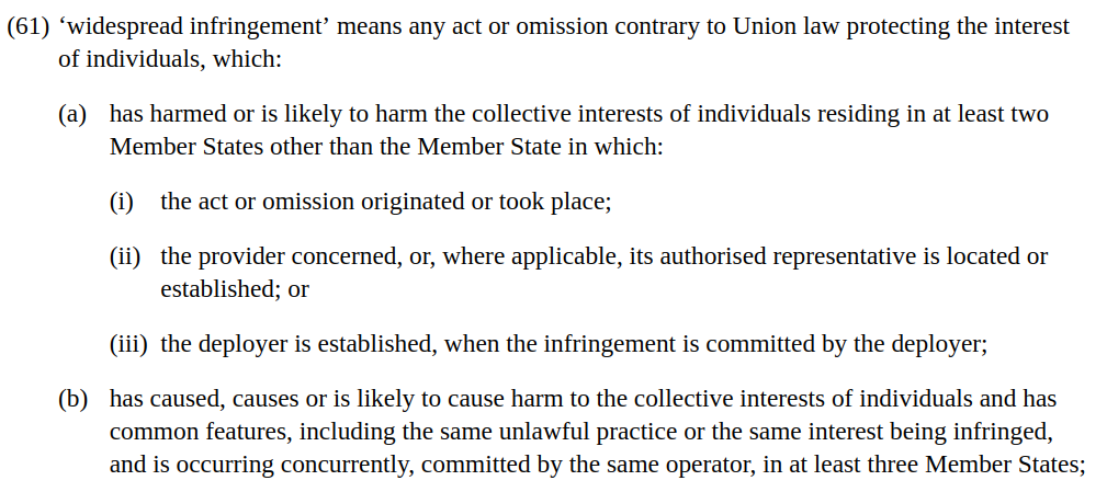 The definition of “widespread infringement” in paragraph 61 spans multiple points and subpoints: