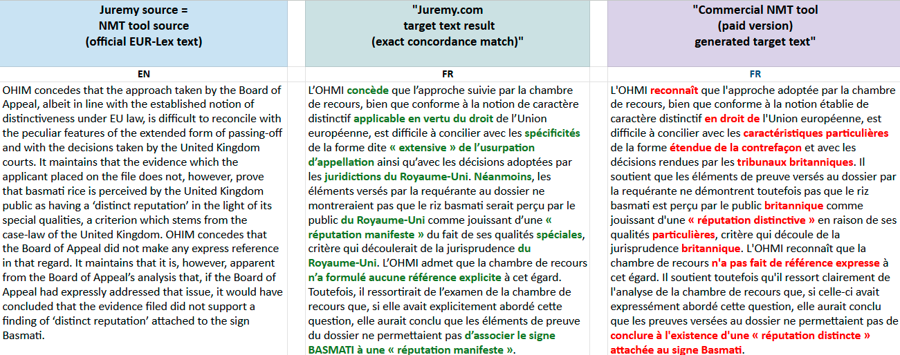 That’s why there is a risk of using NMT-generated texts to provide translations for previously translated segments or sentences - or even terms - in EU texts.
